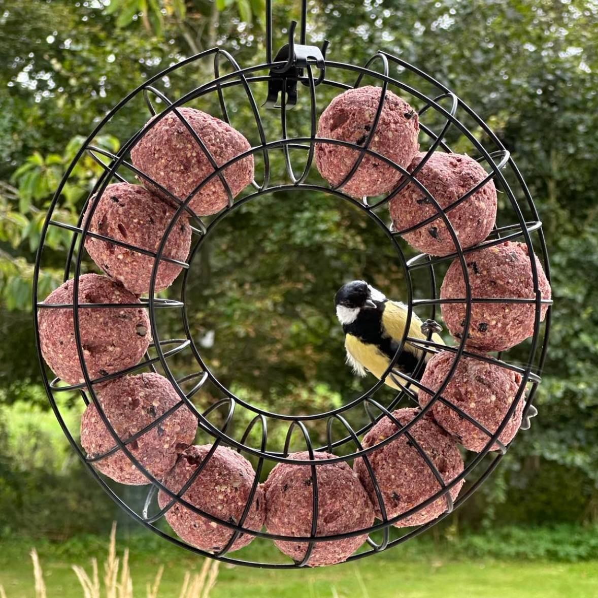 Fågelmatarring för fröbollar - svart metall