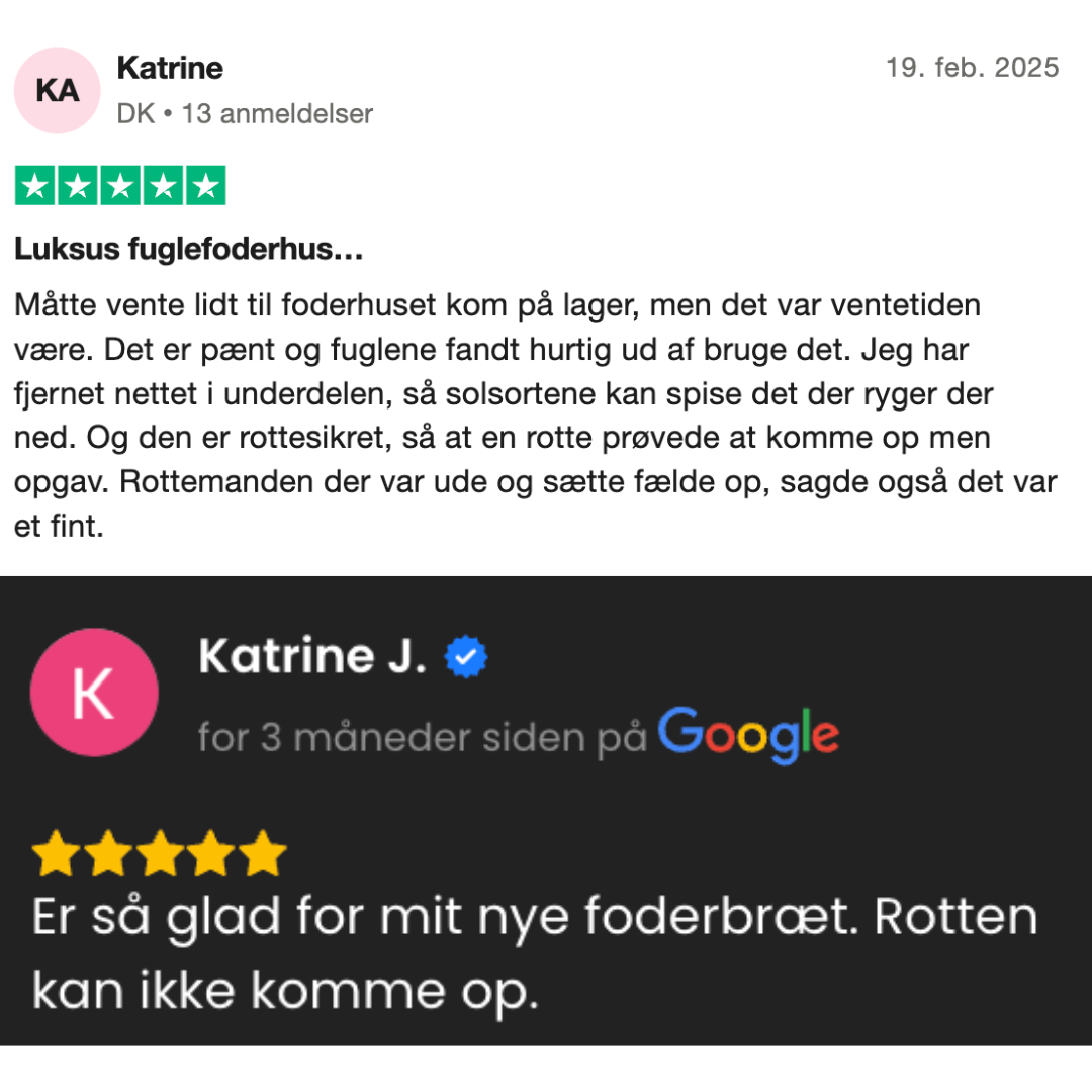 Det yttre gallret skyddar mot stora och oönskade fåglar som råkor och kråkor. Det finns också avlopp, så om lite vatten kommer in är hålen tillräckligt små för att hålla fröna inne, men vattnet kan rinna ut.