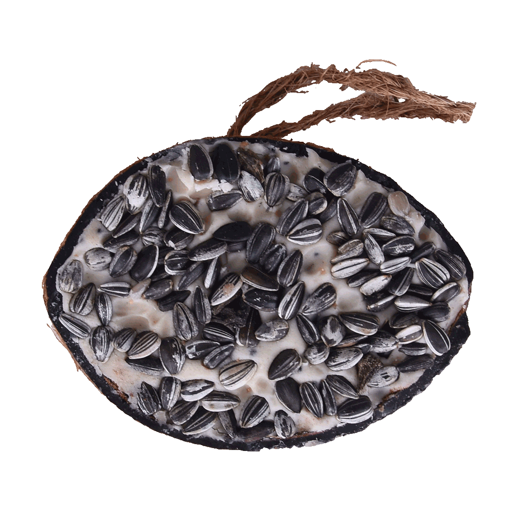Svartnäbbad blandning av halva kokosnötter med topping (blandat) - pris per styck!
